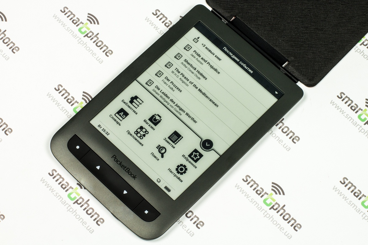 Что не предусмотрено комплектацией, так это чехол. Большой их выбор, впрочем, представлен в магазинах, в том числе на официальном сайте производителя. К нам в редакцию в дополнение к девайсу PocketBook предоставила фирменный легкий чехол-обложку, который защищает от различного рода повреждений исключительно экран устройства.