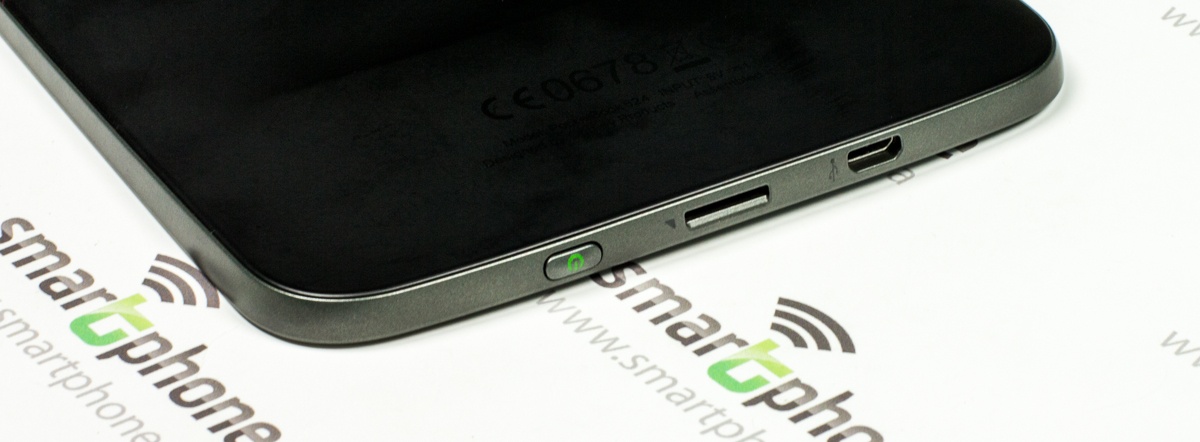Расположение элементов в новинке также не претерпело особых изменений в сравнении с предшествующими моделями. Самой богатой на разъемы и кнопки оказалась нижняя грань — порт micro-USB, слот под карты MicroSD и кнопка питания с подсветкой.
