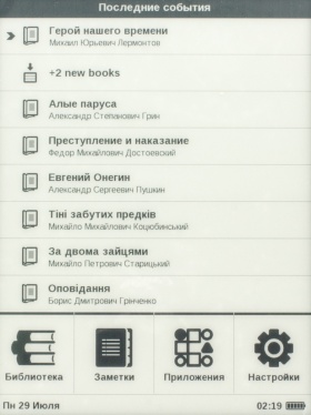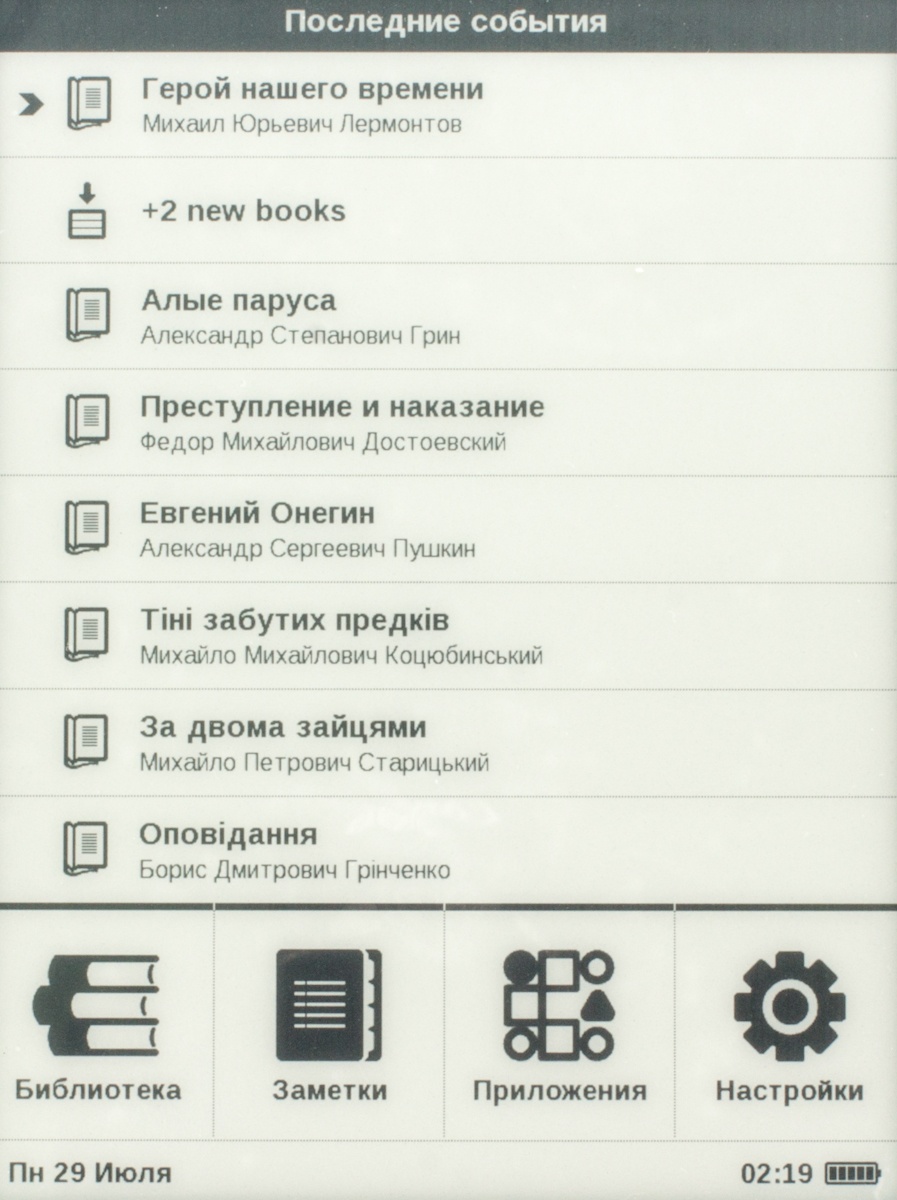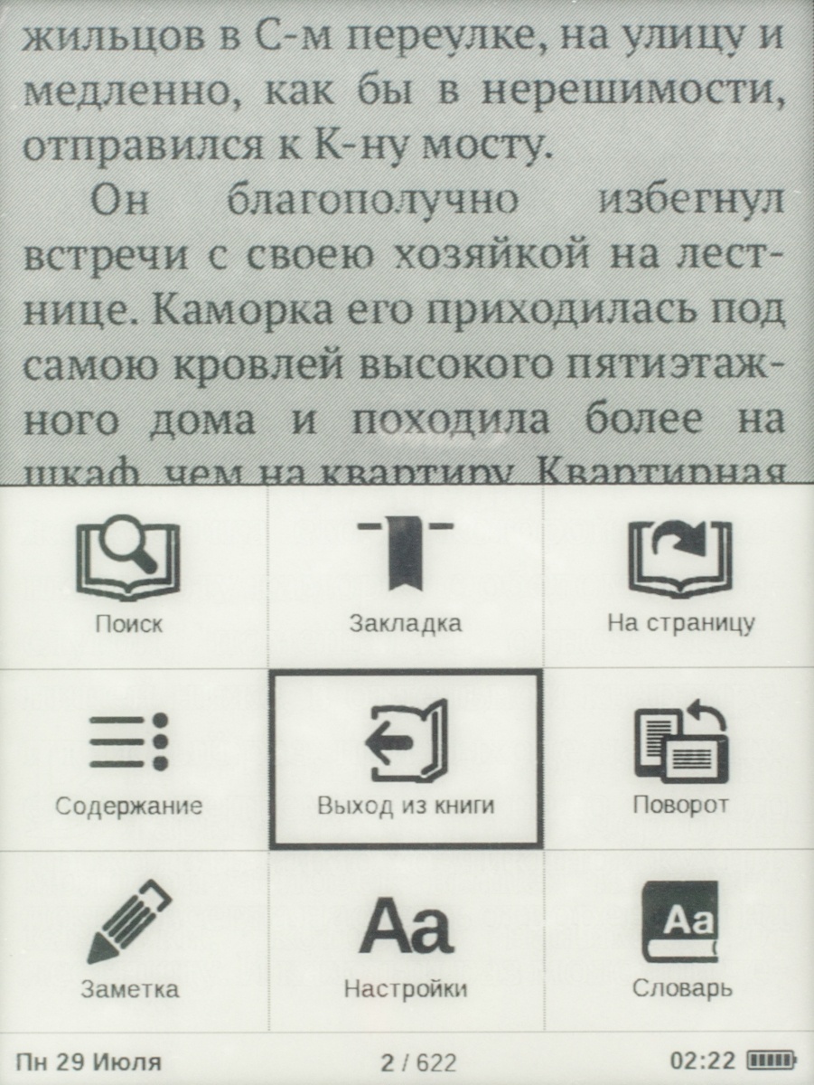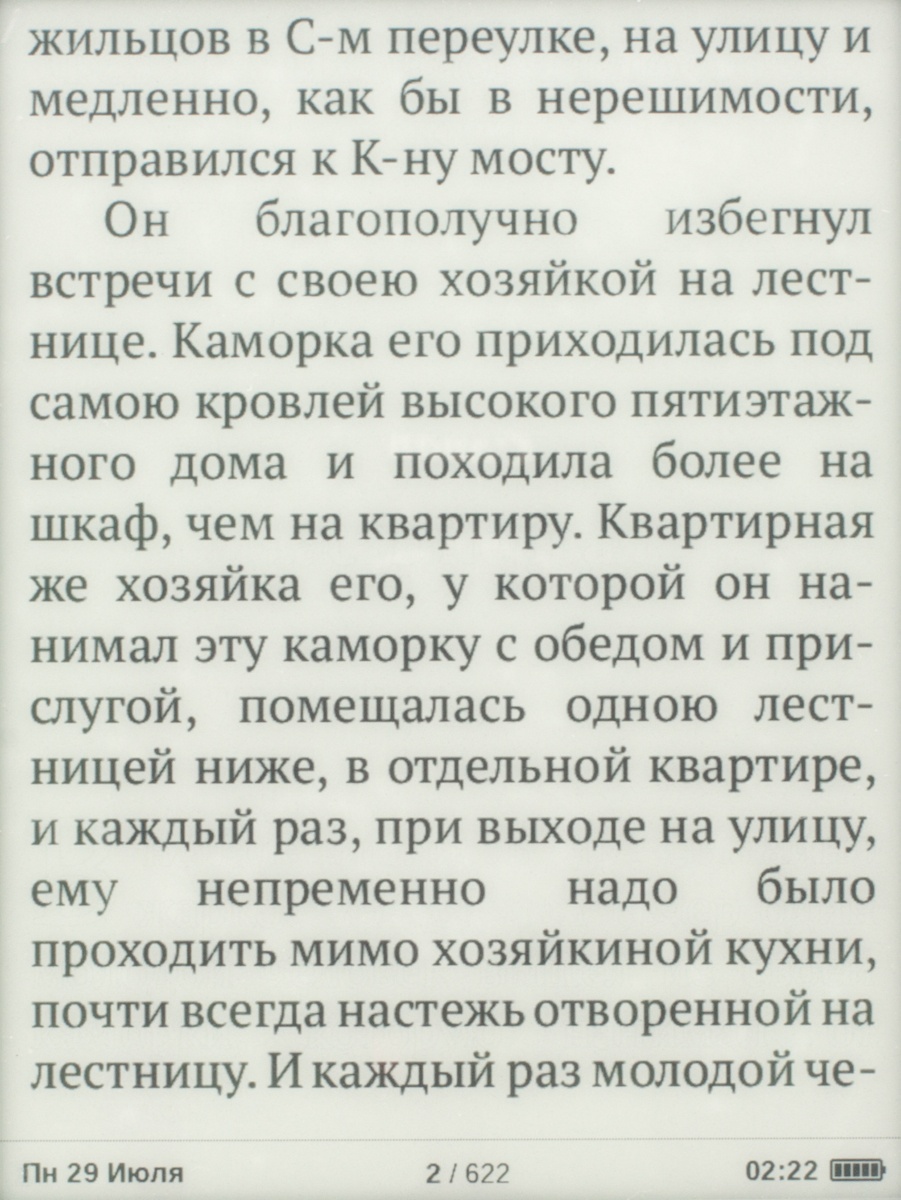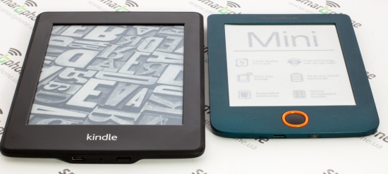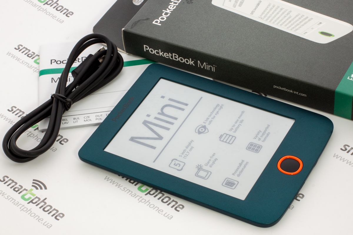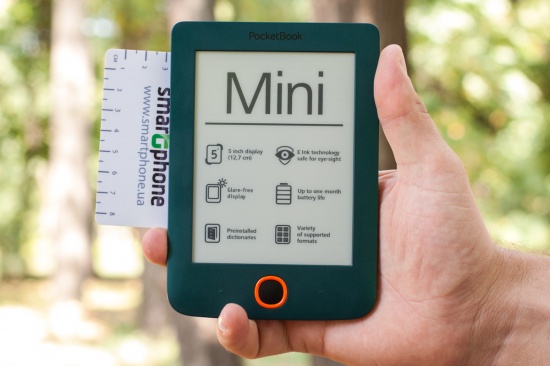 Обзор электронной книги PocketBook MiniКарманный ридер с очень компактными габаритами, 5-дюймовым E-Ink дисплеем, 4 ГБ встроенной памяти, батареей емкостью 1000 мАч, немалым количеством интересных функций и весьма простым меню. Обо всем этом, а также форматах поддерживаемых файлов и цене мы и поговорим далее. Лень читать текстовый обзор? Смотрите видео-обзор...КомплектацияКомплект поставки PocketBook mini дополнен кабелем micro-USB/USB, руководством пользователя, а также гарантийным талоном. Чехла нет, его придется докупать самостоятельно. Рекомендую сделать это сразу, чтобы не поцарапать E-Ink – дисплей во время транспортировки устройства. Дизайн и качество сборкиPocketBook mini своей внешностью во многом напоминает более раннюю модель PocketBook Basic New 613, с обзором которой вы уже имели возможность ознакомиться на страницах нашего сайта. Главное отличие между ними, конечно же, в размерах, а также в физических кнопках управления, которые в рассматриваемом мини-ридере умело спрятаны и представляют собой единое целое с корпусом. В качестве материала используется пластик. Любителям читать во время еды рекомендую вытирать тщательно руки перед тем, как берете в руки ридер, так как на корпусе достаточно хорошо видны отпечатки пальцев. Девайс представлен в трех цветах, мне на обзор достался, пожалуй, самый приятный из них — морской волны. Есть также классические бело-чёрный и чёрный. Черную кнопку главного меню производитель для удобства и «фишки» в дизайне выделил яркой оранжевой рамкой. Компактные размеры — 142,33 х 100,02 х 7,20 мм, наряду с весом в 131 грамм позволяют с легкостью управлять устройством, держа его в одной руке. Качество сборки на высоте, как и качество материалов – придраться не к чему. Функциональные элементыИх здесь по минимуму – на нижней боковой грани кнопка питания и разъем micro-USB, а на передней панели под 5-дюймовым дисплеем разместились клавиши «Назад», «Вперед» и 5-ти позиционный джойстик, выполняющий действия «Вверх», «Вниз», « Вправо», «Влево» и «Ок». Экран5-дюймовый E Ink дисплей с разрешением 800x600 пикселей поддерживает 16 градаций серого, что позволяет отображать сложные тексты и фото. Экран хорош при работе в условиях яркого солнечного света - важный фактор, ведь за окном лето. Бликов во время чтения на солнце я не заметила. Что касается постоянного обновления с перезаливкой экрана, чего требуют все электронные книги, дисплей которых выполнен по технологии E Ink, то я сразу же в «Настройках» выбрала режим обновление «Всегда». В который раз на практике убедилась, что это лучший вариант достичь максимальной четкости и яркости текста. Есть еще, кончено же, режимы «Никогда», а также через каждые 3, 5 или 10 страниц. Оснащение«На борту» PocketBook mini ОС Linux, процессор с тактовой частотой 1ГГц, 256 МБ оперативной памяти и 4 ГБ встроенной, из которых пользователю доступно порядка 3 ГБ. Слота для карт памяти вы здесь не найдете, но для ридера, в котором отсутствует возможность проигрывания аудиофайлов, имеющегося объема более чем достаточнодля загрузки всей необходимой библиотеки книг. Благодаря мультифоматности новинки, литературу можно загружать в 16 различных текстовых форматах, среди которых: PDF, PDF (DRM), ePub, EPUB(DRM), DjVu, FB2, FB2.Zip, DOC, DOCX, RTF, PRC, TCR, TXT, CHM, HTM, HTML. Понравилось быстродействие ридера, никаких задержек в работе устройства не заметила, не возникло у меня проблем и с открыти