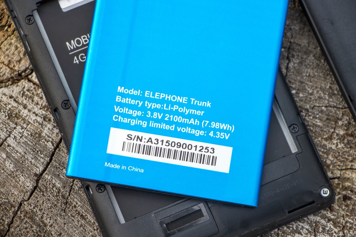 Под крышкой без того, чтобы снять аккумулятор, добраться до SIM карт и карты памяти не получится. Емкость батареи, кстати, 2100 мАч и этого хватит на полный рабочий день. В крайнем случае, можно воспользоваться штатным режимом энергосбережения. Для справки: 30 минут игры в Need For Speed «съедает» всего 20% аккумулятора, а час просмотра видео в высоком разрешении – 25%. И это при максимальной яркости подсветки экрана и включенном Wi-Fi. По заявлению производителя Elephone Trunk может продержаться 360-400 минут в режиме разговора или 6-7 дней в режиме ожидания.