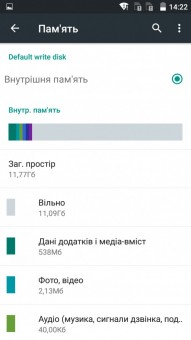 Что касается встроенной памяти, то производителем заявлено 16 ГБ, из которых под личные нужды доступно 11 ГБ. Память можно расширить картами microSD до 64 ГБ.