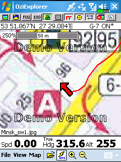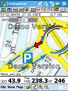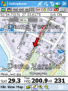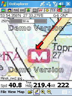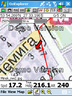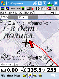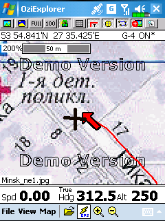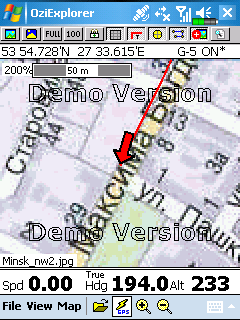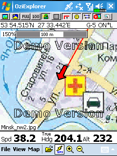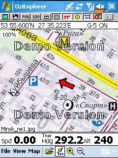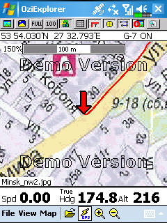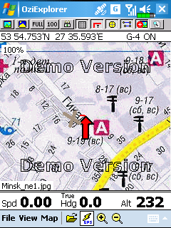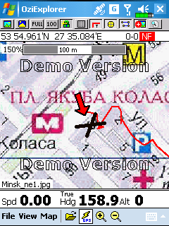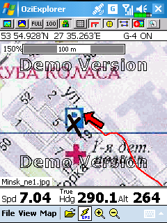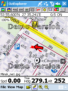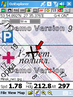 После этого мы решили сразу же провести тестирование навигатора при движении пешком. Приводим соответствующие скриншоты. Реальное местоположение определено крестом.