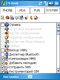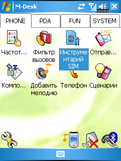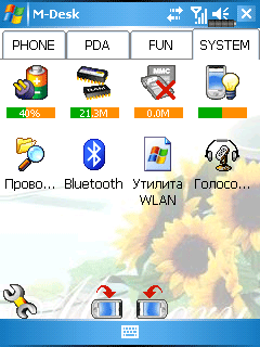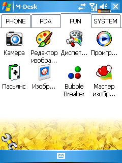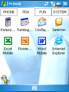 M-Desk. Утилита для быстрого запуска приложений. Вызывается при нажатии на соответствующую кнопку над дисплеем.