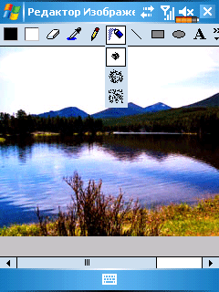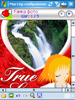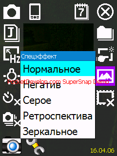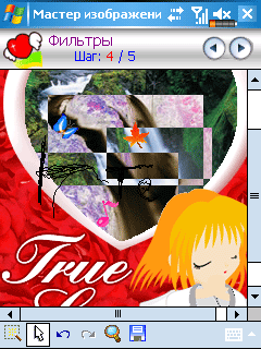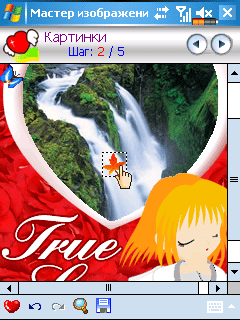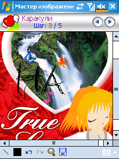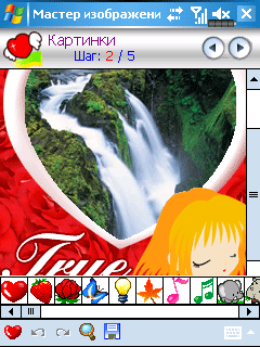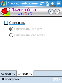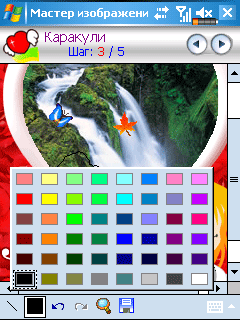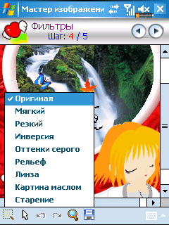 Мастер изображений. Позволяет выполнить над сделанными фотографиями простейшие операции вроде накладывания рамок, добавления интересных картинок и т.д. После завершения работы предлагается либо сохранить рисунок, либо отправить его посредством MMS.