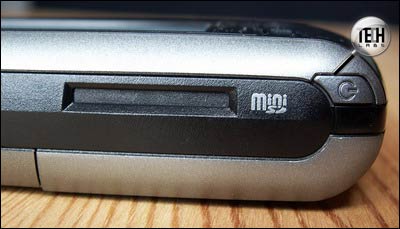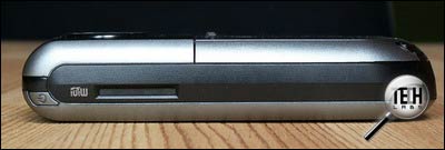 Симметрично над экраном приютились две оставшиеся клавиши. По умолчанию, они запрограммированы на вызов экрана Today и фирменной утилиты M-DESC. Конечно же, их можно переназначить на свое усмотрение, например, на вызов программы GPS-навигации. Прямо над кнопками еле заметны светодиоды индикации. Один из низ подмигивает нам при работе GSM-модуля и зарядке, ну а другой активен при включенном Bluetooth. Жаль, что разработчики не предусмотрели индикации при активном модуле GPS, она была бы очень полезна. Заменой ей стала пиктограмма спутника, появляющаяся в верхней информационной строке экрана. Не самый лучший вариант, надо сказать. Мигающий светодиод гораздо информативнее. Здесь же заметна прорезь телефонного динамика. Максимальная громкость его нам показалась не самой высокой. На улице собеседника почти не слышно. Впрочем, при использовании коммуникатора в совокупности с гарнитурой проблема решается сама собой. Теперь же самое время "разобраться" с боковыми гранями и посмотреть, что там. На правой боковине можно заметить только слот для MiniSD карточек памяти и кнопку включения. Максимально доступный объем карточек такого формата пока что составляет 1 Гб. Да и возможность использования SDIO-периферии с этим форматом так же исчезает.
