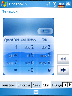 А вот USB-хоста нет, так что можно забыть о подключении внешних носителей, клавиатур и прочей периферии к нашему мобильному другу. GSM/GPRS/EDGEТеперь же настало время разобраться с «телефонными» возможностями нашего гостя. Телефонные модули Qtec 9100 позволяют работать в сетях стандарта GSM 850/900/1800/1900МГц с поддержкой GPRS класса B/10 (3 канала на прием, 2 – на передачу). Управление функциями телефона осуществляется с помощью стандартного приложения "Телефон". Активируется оно при нажатии на кнопку приема вызова либо из меню программ. При этом на экране появляется подобие клавиатуры обычного мобильного телефона. Внешний вид клавиатуры можно выбирать из двух вариантов.