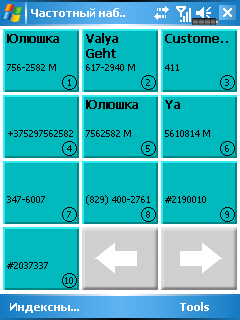 В этой программе можно записать голосовые метки для номеров телефонов (в том числе записанных на SIM карте) или программ. По субъективным впечатлениям, функция распознавания голоса в коммуникаторе работает на уровне лучших аналогов. Такого же мнения придерживаются и те, кому удалось подержать в руках нашего героя. Присутсвует и интересная опция ввода телефонного номера, когда произносишь только цифры. Для быстрого вызова абонентов служит утилита Frequency Dialing (Быстрый дозвон). В ее окне отображаются последние абоненты.