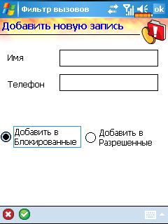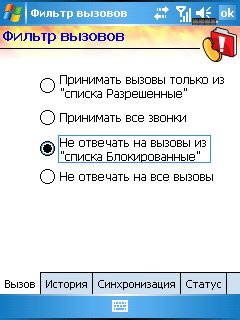 Также имеется возможность организовывать "черный" и "белый" списки абонентов при помощи утилиты Call Filter (Фильтр вызовов).
