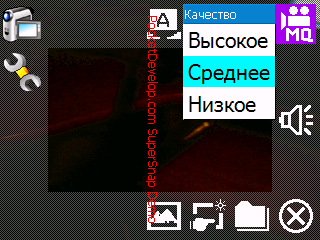 Интересной особенностью камеры является умение снимать в формате BMP. Поскольку изображение при этом не сжимается, то качество снимка получается несколько лучше. Правда, размер изображения при этом около 4 Мб. Об особенностях настройки и способностях камеры рассказывать не имеет смысла, поскольку они традиционны. Лучше взгляните на скриншоты. При съемке видео (конечно же, со звуком) экран переходит в ландшафтный режим работы. Доступ к настройкам осуществляется аналогичным образом.