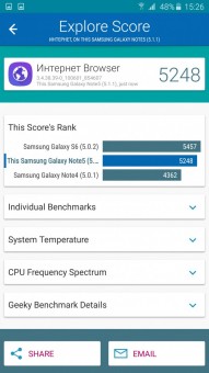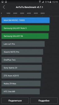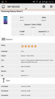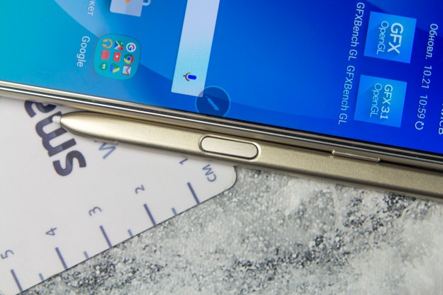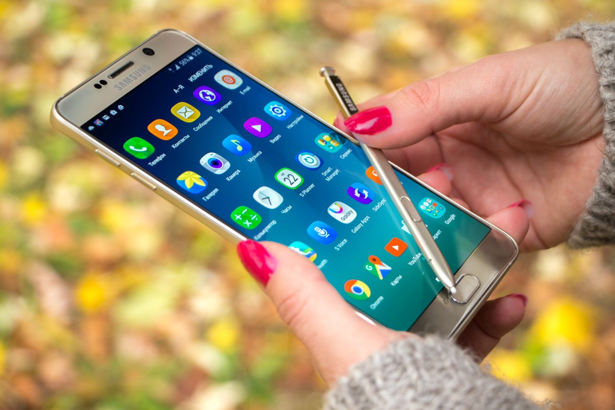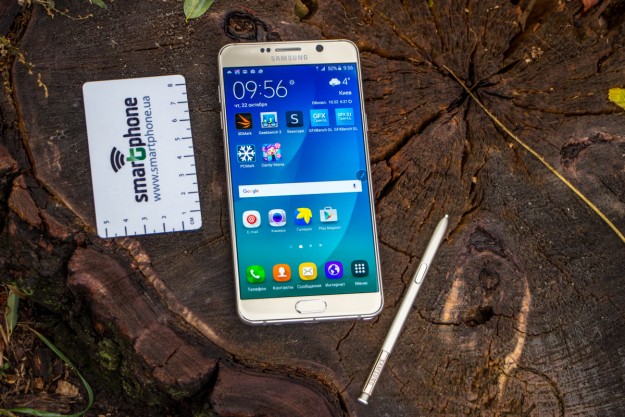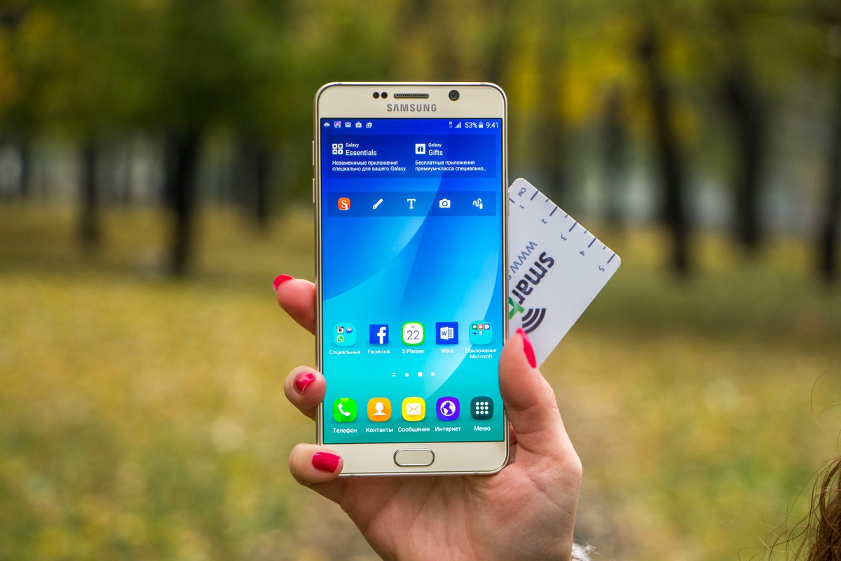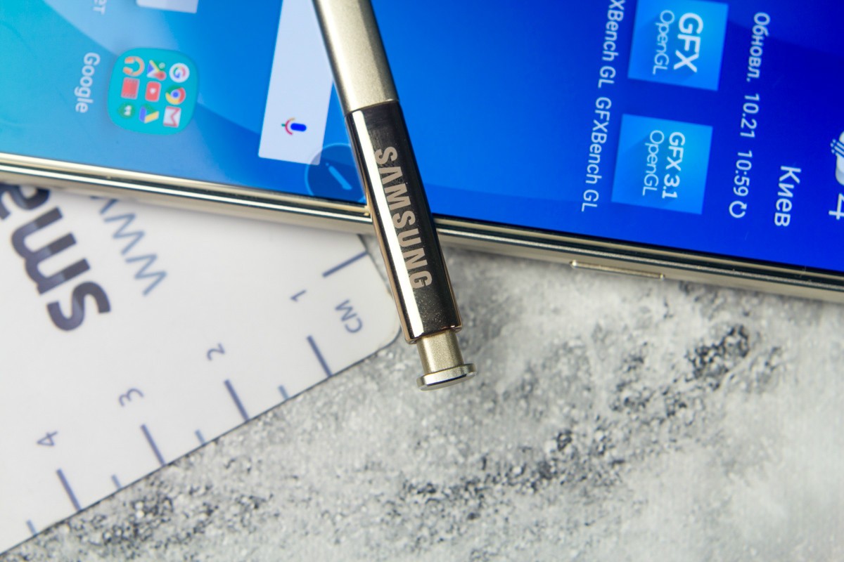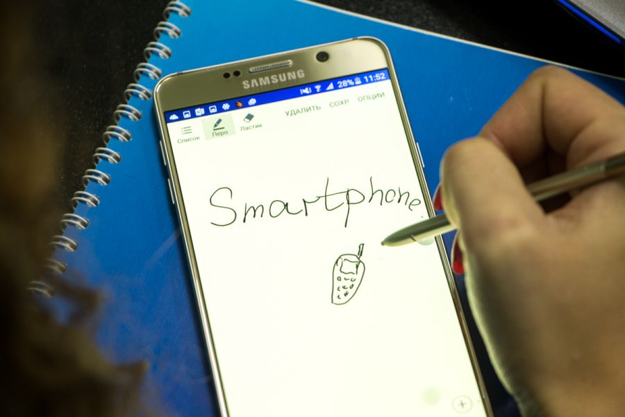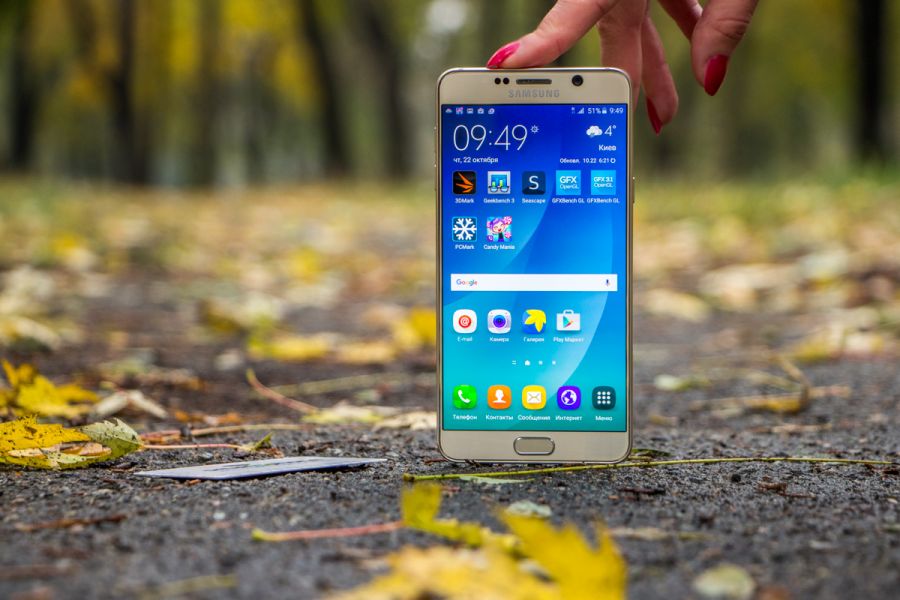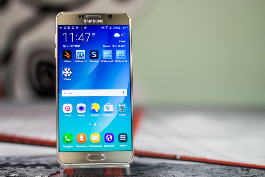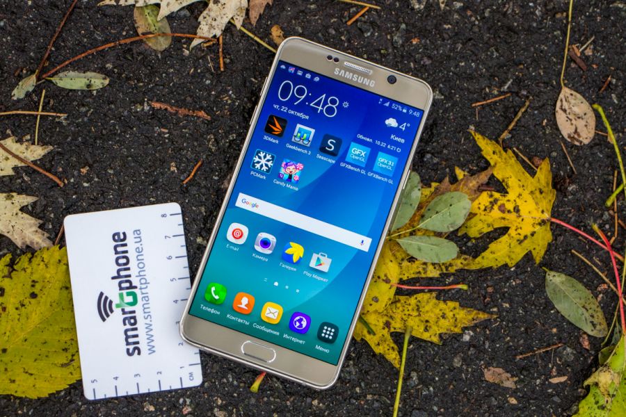 Обзор фаблета Samsung Galaxy Note 5 – флагман со стилусом!Почти сразу же после официального украинского релиза нам удалось протестировать новейший флагман линейки Galaxy Note от Samsung. Для поклонников бренда и потенциальных покупателей главных новостей как минимум три: новый дизайн, усовершенствованное электронное перо S Pen и куда мощнее в сравнении с предшественником «железо». “На бумаге” выглядит более чем многообещающе, да и ценник Note 5 в 19999 грн не дает повода в этом усомниться, тем не менее, детальный обзор Note 5 не помешает. Лень читать текстовый обзор? Смотрите видео-обзор...Дизайн и функциональные элементыGalaxy Note 5 был представлен одновременно с S6 Edge + не просто так. Этих «двух», как оказалось, родит не только похожее «железо» и программная начинка, но и некоторые элементы дизайна. И дело не только в общем фирменном стиле Galaxy-флагманов 2015-го года, предусматривающем сочетание металлической рамки со стеклянными панелями Corning Gorilla Glass 4, но и в одинаковом расположении функциональных элементов. Так, на тыльной панели Note 5 находится выступающий над поверхностью объектив 16Мп камеры с металлическим кантом, логотип компании-производителя, плюс отдельный модуль со светодиодной вспышкой и датчиком сердечного ритма, также обрамленный рамкой из металла. На передней панели фаблета расположен 5.7-дюймовый дисплей, решетка разговорного динамика, объектив 5Мп камеры, LED-индикатор, датчики освещения/приближения, две сенсорные клавиши управления с подсветкой и механическая кнопка «Домой» со встроенным сканером отпечатков пальцев. Последний распознает даже мокрые пальцы, может быть использован как для входа в аккаунты Samsung или других веб-сайтов, так и для подтверждения своих покупок на PayPal. На правом торце фаблета обустроена кнопка питания, слева — клавиши регулировки громкости, сверху — слот для nanoSIM-карты и микрофон шумоподавления, а снизу — 3.5 мм аудиовыход, порт microUSB, микрофон и решетка мультимедийного динамика. Здесь же в нижнем правом углу находится одна из главных отличительных особенностей данной модели, - отсек для стилуса S-Pen четвертого поколения. Однако детально о нем и его возможностях я расскажу чуть ниже. Возвращаясь к дизайну, отмечу, что S6 Edge + и Note 5 похожи, но не идентичны еще и потому, что у первого загнута по бокам передняя панель, а у второго тыльная. Благодаря этому, кстати, несмотря на большой экран и габариты 153.2x76.1x7.6 мм при весе 171 грамм, Note 5 удобно лежит в ладони. А вот дотянуться пальцами одной руки до всех элементов управления на его корпусе и иконок на экране из-за таких размеров сложновато. Отчасти ситуацию спасает наличие программных режимов «Управления одной рукой» и «Простой экран». Качество сборки Note 5 отличное - нет зазоров между деталями и ничего не люфтит. Девайс доступен лишь в двух цветах – золотом, как у нас на тесте, и черном. Можем предположить, что гаджет в темном не менее маркий, чем наш светлый образец, а потому будет требовать частой протирки. СтилусНу а теперь самое время брать в руки карандаш. А стилусу S-Pen нового поколения ведь и вправду есть, чем похвастаться. Перо распознает 2048 степеней нажатия, отслеживает уровень наклона и скорость передвижения, может эмулировать жесты, а рисовать с его помощью можно даже на выключенном экране. Замечу также, что при заталкивании стилуса обратно в смартфон заметка сохраняется авто