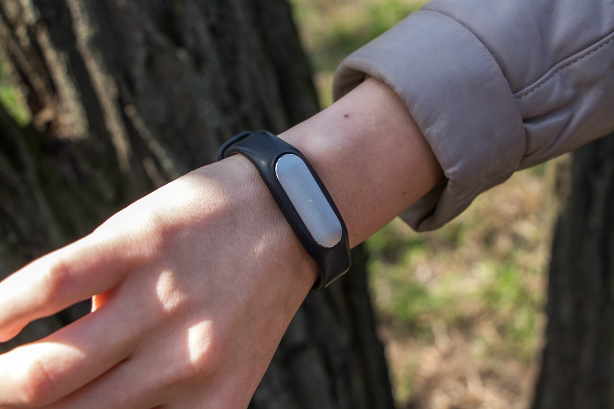 Обзор фитнес-трекера Xiaomi Mi Band – Дешево или сердито?Тестирование фитнес-трекера Xiaomi Mi Band мы решили провести по всем правилам защищенной спортивной электроники: отслеживая с его помощью физическую активность не только в сухую и солнечную погоду, но и в дождь. Кроме того, не забыли изучить такие важные его функции как контроль режима сна и получения уведомлений (сообщение, звонок и тд). О своих впечатлениях от работы 20-долларового Mi Band говорим далее в обзоре. Лень читать текстовый обзор? Смотрите видео-обзор...КомплектацияФитнес-трекер приехал к нам в традиционной для производителя картонной коробке из переработанных материалов – никаких рисунков и надписей, лишь логотип производителя скромно разместился в нижней части ее лицевой стороны. Упаковка, хотя и миниатюрная на вид, но помимо браслета в ней нашлось место зарядному кабелю и инструкции. Дизайн и конструкцияXiaomi Mi Band с черным базовым ремешком, на наш взгляд, выглядит уж очень аскетично и строго, как для спортивного устройства. Но учитывая тот факт, что это гаджет для повседневной жизни, где часто приходится одевать на себя деловой костюм и стараться выглядеть презентабельно, то его не вызывающий лишнего внимания дизайн очень даже оправдан. В других же обстоятельствах незатейливый внешний вид трекера можно разнообразить отдельно приобретенными цветными ремешками. Палитра цветов на любой вкус и под любой образ. Что ж, как вы уже поняли, конструкция Mi Band модульная. Ею предусмотрен сменный термопластичный силиконовый браслет и активный модуль, который в него вставляется. Ремешок получил удобную и надежную металлическую застежку, которая сначала продевается сквозь него, а затем закрепляется в одной из восьми круглых дырочек. Так что даже при активном беге волноваться, что он расстегнётся и потеряется не стоит, как, впрочем, и о том, что может выскочить основной блок. Последний надежно удерживается браслетом, который ко всему прочему является еще и гипоаллергенным. Это, кстати, одно из существенных преимуществ Mi Band, так как устройство предназначено все-таки для круглосуточного ношения. Второй важной особенностью гаджета мы бы назвала водонепроницаемость. Его корпус защищен от попадания внутрь влаги в соответствии со стандартом IP67 - с ним не страшно мыть руки под сильной струей воды, гулять под дождем и принимать душ. Проверили на практике, проблем с нашим тестовым экземпляром не возникло. Вам же рекомендуем перед приемом водных процедур внимательно проверить плотность прилегания к ремешку основного модуля, а уж затем трогаться вплавь. Ну и не забывайте, Mi Band противопоказана горячая ванна, баня, как, впрочем, и соленые водоемы. Есть у его ремешка и другой недостаток - длина 230 мм - не каждое крупное мужское запястье трекер способен обхватит. Зато на хрупкой женской руке и даже детской он выглядит очень аккуратно. Да и вес в 5 грамм абсолютно не отягощает запястье. Ну а теперь пару слов об основном элементе Mi Band - активном модуле, внутри которого установлен акселерометр ADXL362 и микропроцессор Dialog DA14580. Его обратная сторона изготовлена из пластика и на одном из торцов имеет два контакта для подзарядки, а лицевая получила серебристое алюминиевое покрытие и три встроенных светодиода, которые едва видны на ярком солнце. На них возлагается функция сигнализирования пользователю об уро