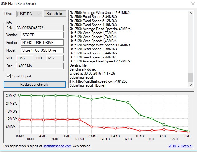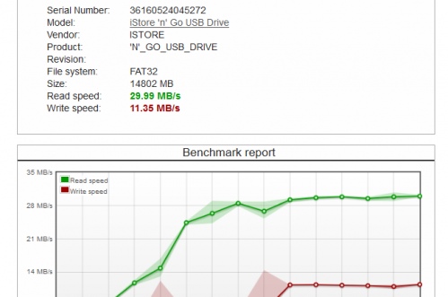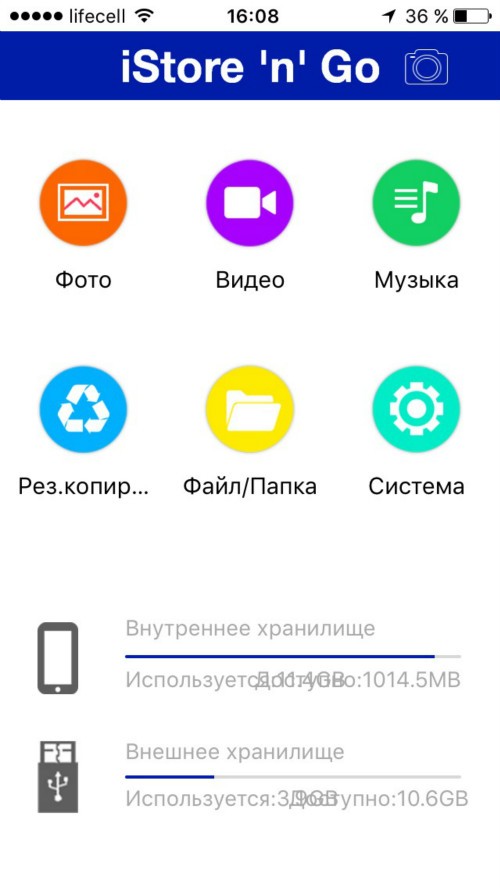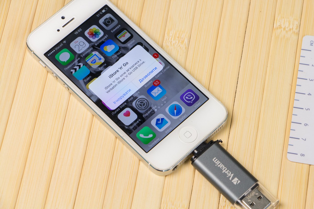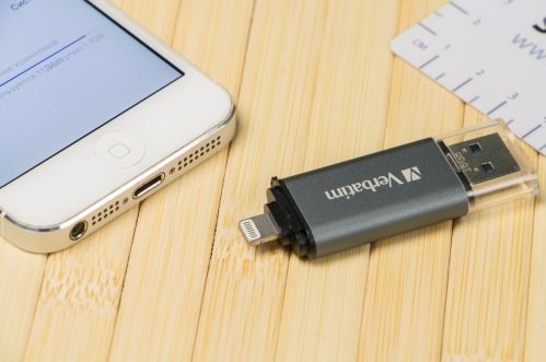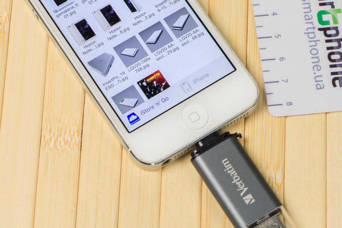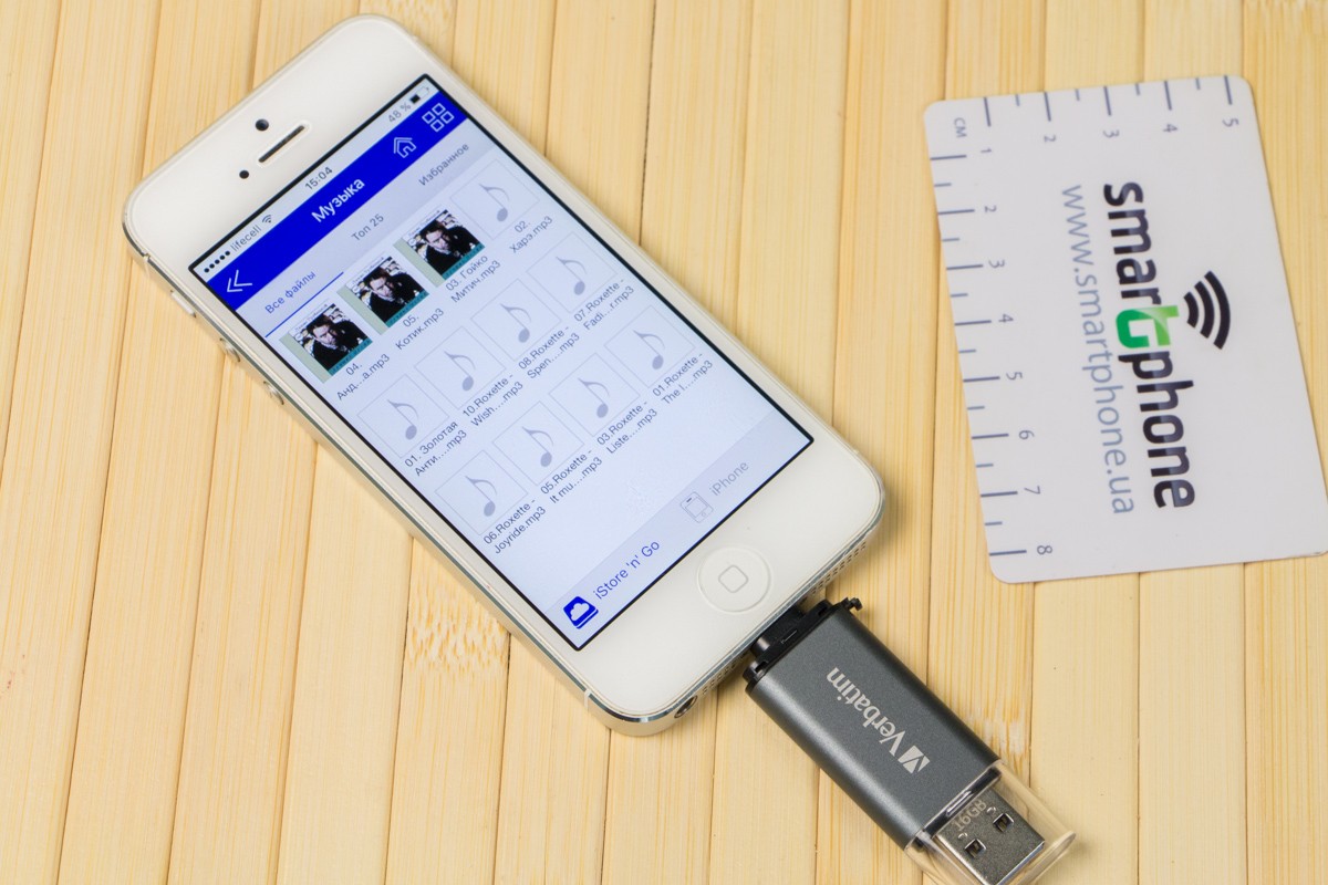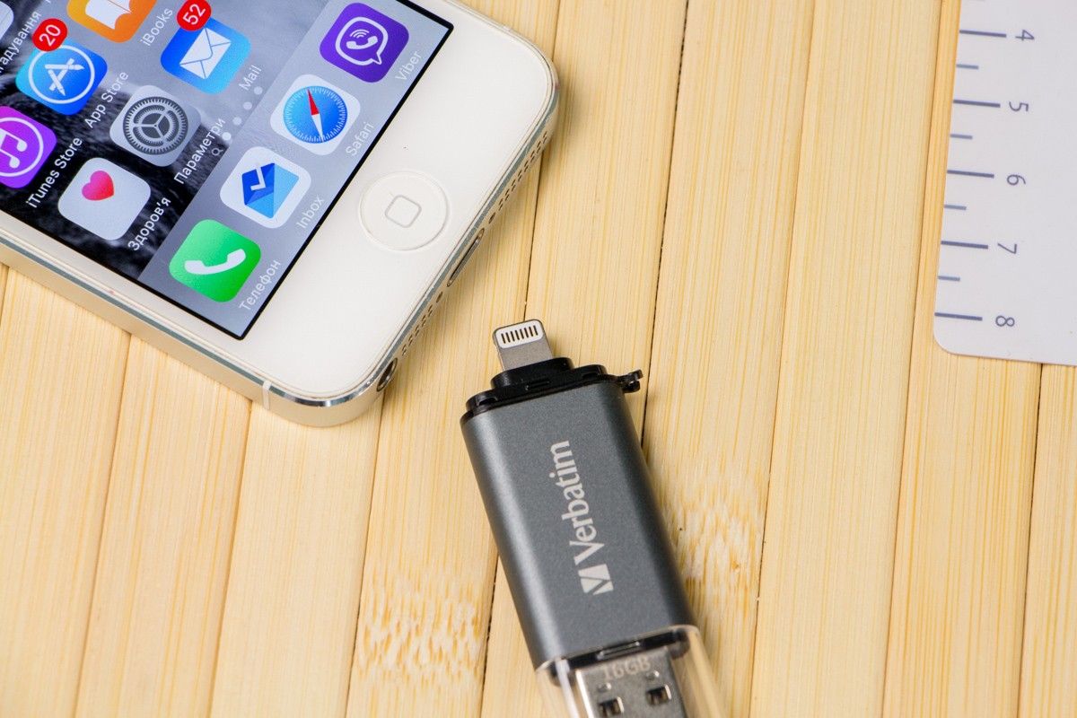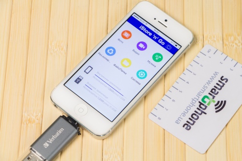 Скорость работы флеш-накопителя при подключении к порту USB 2.0 и USB 3.0 тестировалась также с помощью утилит USBFlashSpeed и ATTO Disk Benchmark Папка с фотографиями объемом 1 ГБ записалась на флешку за 1 минуту 30 секунд, а скопировалась с нее на ноутбук за 25 секунд. Процедура перебрасывания на USB-накопитель фильма весом в 1.7 ГБ заняла 2 минуты 50 секунд, в обратном направлении всего 41 секунду. СовместимостьПомимо поддержки USB версии 3.0 ключевой особенностью Verbatim Store'n'Go USB 3.0 Drive Lightning, как уже упоминалось ранее, является наличие коннектора Lightning. И стоит отметить, что на сегодняшний день тестируемая модель одна из немногих, сертифицированная MFi (Made for iPhone/iPod/iPad) по программе лицензирования Apple. Для удобства пользователя создано фирменное приложение iStore 'n' Go, которое можно скачать бесплатно из App Store, а затем управлять контентом напрямую с iOS-гаджета. Интерфейс программы интуитивно понятен и доступен, в том числе и на русском языке. Помимо быстрой передачи файлов с помощью iStore 'n' Go можно создавать резервные копии контактов и фото, и тд. Кроме того, с ее помощью можно слушать музыку и смотреть видео из памяти флешки. Выводы Что ж, если Вы счастливый обладатель техники Apple, но моделей не с максимально возможным объемом встроенной памяти, то Verbatim Store'n'Go USB 3.0 Drive Lightning может стать интересным вариантом для покупки. Тем более, что стандартный порт USB здесь версии 3.0, что обеспечивает выигрыш в скоростях чтения/записи над конкурентами, оборудованными интерфейсами USB 2.0. Имеет тестируемый накопитель и ряд других особенностей, например, прочный металлический корпус, пожизненную гарантию и возможность бесплатной загрузки с сайта производителя удобной программы iStore 'n' Go.