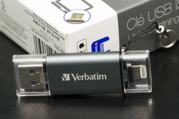 Дизайн и конструкцияVerbatim Store'n'Go USB 3.0 Drive Lightning не может похвастаться миниатюрными размерами или какой-то очень оригинальной внешностью - основная ставка в дизайне данного решения сделана на качество и прочность материалов.