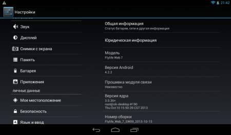 Работает новинка под управлением ОС Android 4.2.2. Каких-либо фирменных надстроек не предусмотрено.
