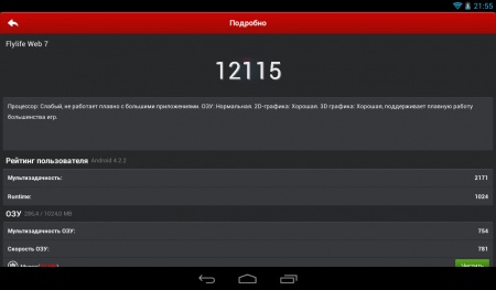 Возможностей реализованного в Fly Flylife Web7 «железа» вполне достаточно как для просмотра HD-видео, так и для не ресурсоемких игр. Далее знакомимся с результатами тестирования производительности посредством различных бенчмарков.