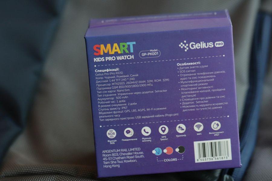 Обзор Gelius Pro GP-PK001 – ваши «умные» часы для младшенького!Сегодня уже «умные» часы для детей школьного возраста – это нисколько не роскошь. Такой девайс позволяет ребенку быть все время на связи, вести учет активностей, фотографировать, звонить, а вы, со своей стороны, можете еще и отслеживать его местонахождение в режиме реального времени. Какие шансы у этой модели от украинского бренда быть замеченной на фоне немалого количества конкурентов? Давайте разбираться. Упаковка Внешность коробки детских часов не должна быть блеклой, ведь дети не любят невзрачных вещей от слова совсем. Мы в точности не знаем, этим ли доводом руководствовались дизайнеры, рисовавшие макет упаковки, но получилось в итоге стояще – красивое сочетание фиолетового полотна с большим количеством других цветов и оттенков. Словом, здесь внимание обеспечено.