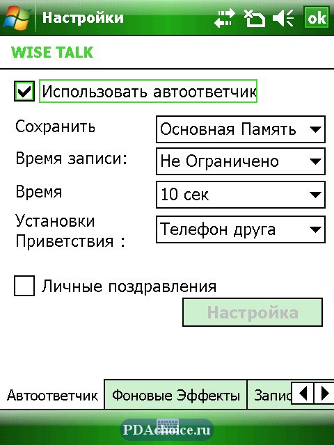 В моем комплекте никакого навигационного ПО не было, а среди предустановленных программ можно отметить приложение «GPS-трекинг», которое записывает все ваши перемещения в текстовый файл. Предустановленное программное обеспечение на Gigabyte i350Пожалуй, это самый обширный раздел обзора, так как компания Gigabyte не поскупилась на софт. В Gigabyte GSmart i350 действительно много предустановленных программ. Расскажем немного о каждой из них. Wize Talk – это уникальный комплекс программ, который позволяет существенно расширить возможности коммуникатора. Аналогов у данного софта практически нет. Из особенностей программы стоит отметить возможность включать фоновый звук во время телефонного разговора (так, что будет казаться, что вы в другом месте), причем базу данных звуков можно расширить самостоятельно, а так же можно включить автоответчик.