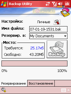 Естественно не обошлось и без программы для резервного копирования данных на карту памяти — Backup Utility.