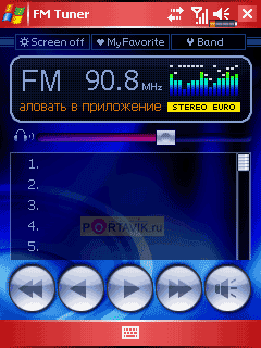 Как мы уже упоминали, вместе с коммуникатором поставляется довольно качественная гарнитура, которая помимо высокой громкости выдает еще и хорошее звучание. Через внешний динамик звук тоже достаточно громкий и чистый. Все это может пригодиться при использовании встроенного FM-радио. Для компании E-TEN уже стало доброй традицией оснащать свои продукты FM-радио, М700 — не исключение.
