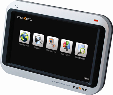Первый же GPS-навигатор, выпущенный под маркой teXet, предлагает не только проводить до места назначения, но ещё и развлечь в пути. Правда, перед этим он немного подумает. Отечественная компания "Электронные системы Алкотел" помимо созвучности названия с довольно популярным некогда французским производителем мобильников, известна также своими DECT-телефонами и недорогими МР3-плеерами, выпускаемыми под маркой teXet. В последнее время ассортимент продукции расширился за счёт цифровых фоторамок и Bluetooth-гарнитур, а с осени компания вышла и на рынок GPS-навигаторов. Одна за другой появились сразу три модели. Первая их них - GPS-навигатор teXet TN-510, о котором и пойдёт речь ниже. Вещица не лишена привлекательности — прямоугольный корпус со скругленными углами выполнен в чёрно-серебристой гамме. Минимальное количество управляющих элементов обеспечивается наличием сенсорного экрана, с помощью которого и происходит управление навигатором. Поначалу может несколько смутить толщина устройства, но в кармане его носить и не предполагается, так что это вряд ли имеет какое-либо значение. Лаконичность оформления не помешала разработчикам разместить на передней панели индикатор заряда батареи, за что им отдельное спасибо. Помимо возможности выключить навигатор, его можно перевести в спящий режим — соответствующая клавиша находится на левом ребре устройства. Напротив, на правом, имеет место кнопка вызова меню. Верхнюю грань от управляющих элементов освободили, а на нижнюю вынесли клавишу включения/выключения навигатора, слот карты памяти, разъём miniUSB, а также еще два разъёма — Traffic Message Channel для подключения приёмника системы оповещения о пробках и AV для подключения видеокамеры. Но для нашей страны в настоящее время эти услуги недоступны, поэтому даже в руководстве пользователя указано, что порты пока пользователю не пригодятся. На тыльной стороне устройства находятся проушина для автомобильного крепления и динамик. ![]() Качество сборки хорошее, ощущения, что гаджет вот-вот развалится в руках не возникает. Особо придирчивые могут посетовать на глубоко утопленный в корпус дисплей, из-за этого в уголках экрана может скапливаться пыль, от которой проблематично избавиться. В комплекте с гаджетом идёт SD-карта на 2 Гб, которая служит основной памятью устройства. Без неё и навигатор не включается, и компьютер не видит его при подключении. ![]() Сенсорный экран с разрешением 480х272 точки вполне удобен для управления с помощью пальцев: размер иконок подходящий, отклик на нажатия хороший. Интерфейс предельно прост и понятен, разобраться в нём можно и без инструкции. Привыкание происходит достаточно быстро. ![]() К компьютеру навигатор подключается стандартнейшим кабелем miniUSB-USB, распознаётся без труда — как обычный накопитель со стандартным набором папок, по которым можно сортировать фотографии, видео, музыку и др. Кстати, при подключении устройства к компьютеру, автоматически начинается его подзарядка. ![]() Меню состоит из пяти пунктов, расположенных в ряд в виде иконок с подписями: «Навигация», «Медиа», «Настройки», «Система», «Сведения». Последние три пункта предельно просты. В "Настройках" можно отрегулировать громкость звуков и яркость экрана, в "Системе" выбрать язык, произвести калибровку экрана, включить автоматическое отключение и выставить время, в "Сведе