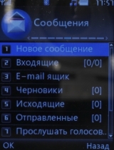Стандартный пункт меню любого современного аппарата. Из него можно попасть в подпункты для работы с SMS, MMS и Электронной почтой (e-mail). Последняя может работать с серверами по протоколам pop3 и imap4. Контакты