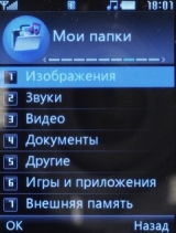Подпункт меню для работы с телефонной книгой. Для каждого контакта можно задать три телефонных номера и номер факса, адрес электронной почты, поместить его в определённую группу. В поле имя умещается 42 символа, названия групп не редактируются. Также для каждого контакта предусмотрена возможность задать изображение, которое будет показываться при вызове, и есть возможность заполнить заметку о персоне. Мои папки - это доступ к памяти аппарата, к хранящимся в ней приложениям, фото видео материалам. Так же этот аппарат должен уметь просматривать документы MS Office, в нашем случае просмотр презентаций PowerPoint нареканий не вызвал, но документы Word просмотреть не удалось.