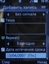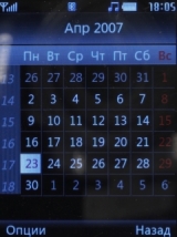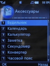 Аксессуары: Будильник, календарь, заметки, секундомер, конвертер, часовой пояс и доступ к sim-меню. Будильник можно настроить на срабатывание как одиночное, так и ежедневное или по определённым дням. Однако всего будильников можно задать только один, что неудобно людям с плавающим временем просыпания. В календаре можно задавать повторяющиеся события, при этом повторение настраивается весьма гибко: от ежедневного до ежегодного.