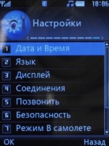 Настройки - сдесь собраны традиционные настройки аппарата, такие как настройка дисплея, даты и времени, безопасности, включение/выключение режима полёта, когда отключается радиочасть телефона, но остаётся возможность им пользоваться в других целях, и многие другие.