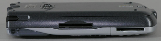 В правой части уместились сразу два слота карт памяти – SD и miniSD и оба с поддержкой SDIO . Решение спорное, ведь классика двухслотовых наладонников это CF + SD , но преимуществ не заметить нельзя. Различной преферии для подключения в слот SD или miniSD уже достаточно много, объёмы карт достигли 4 ГБ, а размеры гораздо меньше, чем Compact flash , что очень важно для столь сильно «заряженного» КПК.