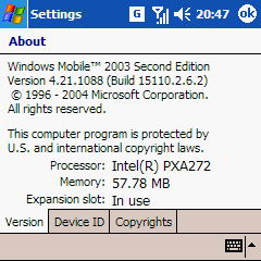 Внешний вид и удобство пользованияПервое что замечаешь - это размер. КПК действительно не маленьких размеров и соизмерим с такими монстрами как HP hw 4700, но это и не удивительно ведь треть передней панели устройства занимает клавиатура, небольшая, но набор в два пальца вполне возможен и даже комфортен. Клавиши вызова меню « Start », контекстного меню, клавиши « shift » и « tab », подтверждения ввода и удаления символа, а также клавиша активации цифровой клавиатуры позволяют сделать набор текста и простым и комфортным. Любые манипуляции можно проводить без помощи стилуса, что бывает очень полезным. У КПК есть интересный механизм блокировки экрана – это полупрозрачная крышка. Крышка имеет три фиксированных положения – в сложенном состоянии с закрытым экраном, поднятая на 45 градусов относительно КПК и полностью открытая, но только на 170 градусов. Но не нужно забывать про стандартные для коммуникаторов клавиши - они собраны в визуально отдельный блок. Клавиши ответа и отказа вызова, клавиша «Контакты», клавиша «Сообщения» и стандартный четырёхпозиционный джойстик, который является и клавишей подтверждения. Джойстик чётко реагирует на нажатия и при этом нет случайных нажатий клавиши подтверждения, что часто встречается при подобной организации органов управления. При работе со стилусом или джойстиком клавиатура ничем не выделяется, но стоит нажать одну из клавиш и активируется голубая подсветка. Нужно заметить – в темноте смотрится очень красиво, а главное даже в кромешной тьме набор текста не вызовет проблем.