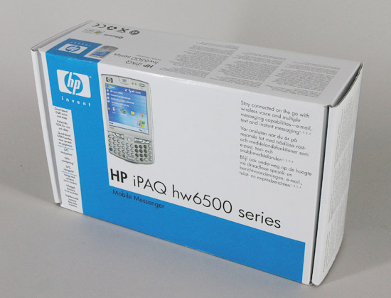 Коробка устройства выполнена в стандартном стиле для наладонников HP . В редакцию попал образец и партии предназначенной для Польши. Надпись на коробке « hw 6500» вызывает недоумение. На самом деле это просто обозначение серии устройств, ведь ещё есть hw 6510 (без встроенной камеры).