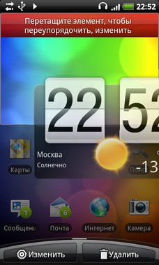 всех установленных на коммуникаторе приложений. ![]() Обновленная оболочка HTC Sense не только удобна в использовании, но и эстетически приятна. Мы уже рассматривали реализацию оболочки Sense в обзоре HTC HD Mini (читать обзор), но сейчас давайте более внимательно пригладимся к меню и интерфейсу HTC Desire HD. Все-таки, это самый мощный смартфон компании HTC. Включение коммуникатора открывает один из семи основных экранов, на котором пользователь по своему выбору может разместить необходимые виджеты и наиболее часто используемые ярлыки приложений. ![]() ![]() Группируя в произвольном порядке нужные иконки, легко настроить оболочку Sense под свои нужды. ![]() ![]() Внизу основного экрана всегда находятся