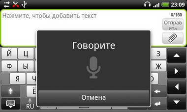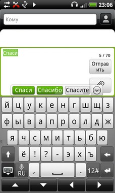 является плюсом. Реагирование виртуальных клавиш четкое и верное. Интересна также функция голосового набора сообщения. При удержании