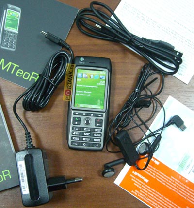 Комплект, собственно, привычен и остался HTC в наследство от Qtеk: зарядное устройство, USB-шнурок, гарнитура да книжки и диски с информацией и ПО: