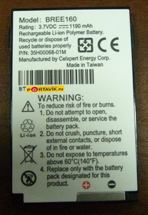 Емкость литий-ионного аккумулятора HTC MTeoR составляет 1190 мАч. При такой батарейке девайс продержится работающим около 4-х часов (режим активного использования), спящим - "до 220 часов" по обещанию "руководства пользователя" и чуть меньше на практике.