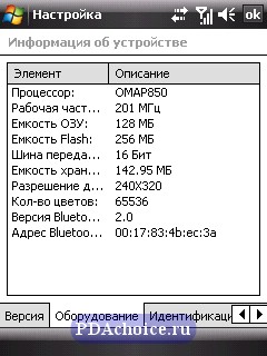Но повод для радости все-таки есть. Количество оперативной памяти по сравнению с P3300 возросло вдвое – теперь ее 128 Мб. При этом примерно 75 Мб доступно для запуска программ. Для обладателей P3300 разница в скорости работы будет заметна сразу. Теперь нет надобности закрывать часть приложений, запуская навигационную программу. Да и скорость открытия меню, настроек, хотя и незначительно, но возросла. Станет ли это бальзамом на сердце тех, кто успел разочароваться низкой частотой процессора – не знаю. Скажу так – аппарат работает ничуть не медленнее, чем HTC на платформе Qualcomm или E-Ten на платформе Samsung. Объем памяти для хранения данных – 256 Мб. Из них после первого запуска будет доступно примерно 120Мб. Проведем тестирование производительности HTC P3470 c помощью нескольких программ бенчмарков. Для начала привычный TCPMP.