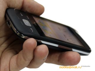 Первое впечатление от HTC Smart – отличное исполнение. Компания не стала делать скидок на недорогой статус продукта. Материалы и сборка на самом высоком уровне, как обычно у HTC. Тут бархатистый пластик, холодная металлическая рамка, фактурная стилизация под срез и вообще приятные пропорции корпуса. Последний получился небольшим и легким, но не чрезмерно, а в самый раз. Несомненно, внешность – это один из козырей HTC Smart. ![]() Держать Smart в руке очень удобно, аппарат в этом максимально приятный. Таких ощущений от тех же Samsung и LG не получите. ![]() ![]() ![]() Но не все славно с эргономикой – кнопки на лицевой панели запутают непосвященного пользователя. Тут две большие для вызова, с которыми все понятно, а еще маленькая под экраном и центральная со стрелкой возврата. Последняя служит также для входа в меню с главного экрана, а та маленькая – это вызов контекстного меню, как в Android. Навигационных кнопок нет, как и софтовых. Нужно привыкать. ![]() ![]() ![]() ![]() ![]() ![]() На торцах стандартный набор элементов.