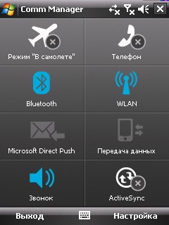 Список дополнительных программ продолжает фирменный диспетчер задач. Очень нужное и удобное приложение позволяет легко управлять запущенными программами и закрывать (а не свертывать в трей) ненужные. Назначение остальных приложений понятно из названий: «Потоковое мультимедиа», «Голосовой набор», Zip, «Менеджер SIM», Adobe Reader, Java. Bluetooth работает под управлением стандартных драйверов от Microsoft. Передача данных ведется на скорости 100 кБ/с. Поддерживаемые профили: SPP, OPP, FTP, HFP, HID, A2DP, AVRCP, PAN, SAP.