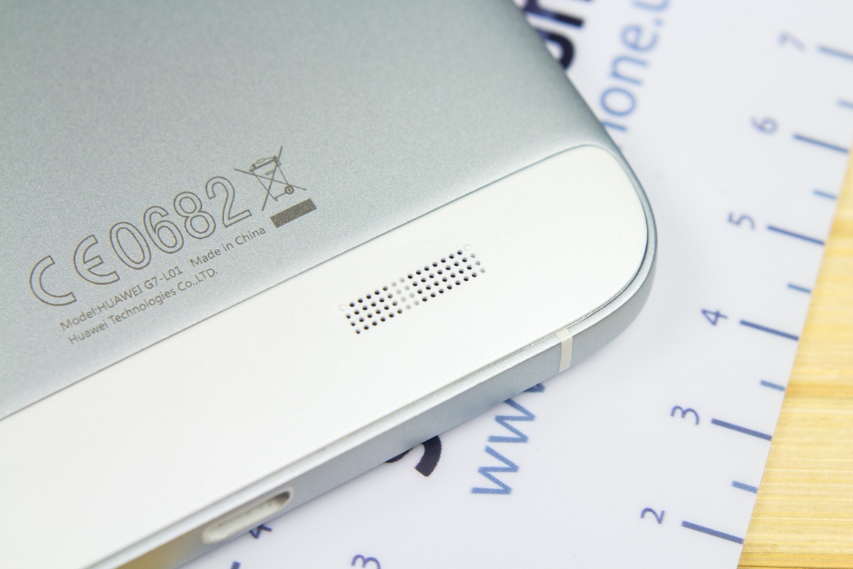 Вверху обустроен микрофон шумоподавления, LED-вспышка и глазок основной 13Мп камеры, обрамленный металлическим кольцом, а внизу прорезь мультимедийного динамика.