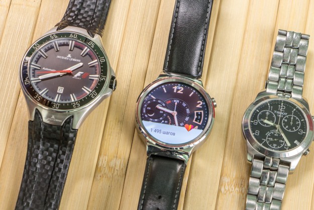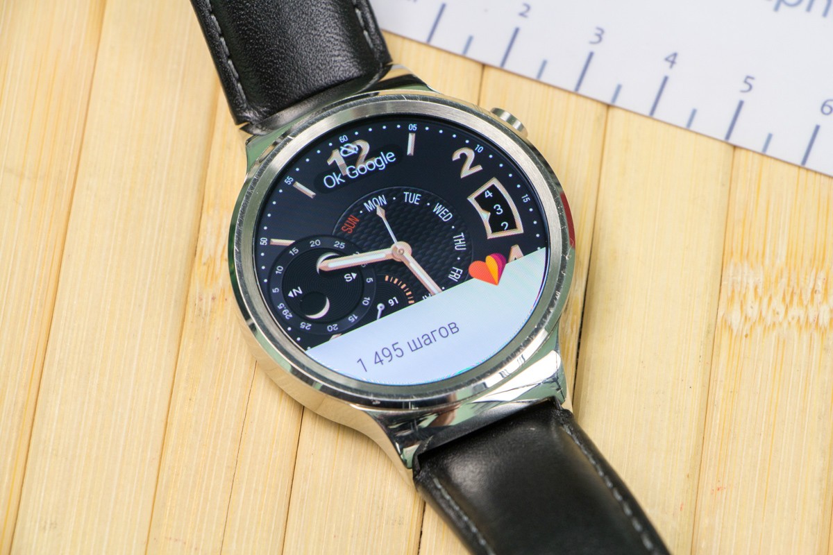 Обзор Huawei Watch: красивые часы со смарт-функциямиНа обзоре у портала Smartphone.ua смарт-часы Huawei Watch. Эту модель показали весной прошлого года, но при этом устройство еще не потеряло своей актуальности. Возможности и наши впечатления от умных часов Huawei за 9999 гривен далее в обзоре. ДизайнЧасы красивые. Это в любом случае субъективное мнение. Для девушек они не подойдут. С одной стороны - слишком простые, с другой - не такие уже и компактные. Под “простым” подразумеваем корпус, так как это просто форма из металла, на которой нет дополнительных декоративных элементов и украшений. Это конкретно в нашей версии, ведь бывают модификации в черном металле и золоте. Основные габаритные размеры следующие: диаметр - 42 мм, а толщина – 11,3 мм. Можно сказать, что это средний размер. Вес также не отягощает – всего 134 г. Корпус выполнен из нержавеющий стали марки 316L. Верхнюю часть прикрывает сапфировое стекло. Важно также отметить, что устройство защищено от пыли и влаги по стандарту IP67. Из элементов управления на корпусе Huawei Watch можно выделить только механическую кнопку справа и функциональную нижнюю часть. По ее центру расположен датчик измерения пульса, а рядом - 4 контакта для подключения зарядного устройства. Если говорить о коже ремешка в нашем экземпляре, то она приятная для руки, мягкая, но со временем изнашивается. На тестовом образце уже появились царапины, так что для повседневной носки лучше покупайте металлические ремешки. Процесс их замены не сложен, плюс можно подобрать аксессуар и от стороннего производителя. И по весу, и по размеру Huawei Watch - это классические мужские часы. Ради интереса примерили на тонкую женскую руку - смотрится инородно. ДисплейПосле внешнего вида экран занимает вторую по важности строчку в позиционировании Huawei Watch. При диагонали в 1,4 дюйма его разрешение составляет 400х400 точек. Он полностью круглый и выполнен по технологии AMOLED. Яркость может меняться автоматически или на выбор предоставляется 5 пользовательских уровней. Информация с дисплея хорошо читается даже в солнечную погоду. Отпечатки стираются быстро, а палец скользит комфортно, что свидетельствует о качественном олеофобном покрытии. Углы обзора достаточные. ЦиферблатыВот это действительно интересный компонент и одно из главных достоинство Huawei Watch, как, впрочем, и других смарт-часов на Android Wear. Даже пользователь с большими запросами найдет себе подходящий вариант. Их много, смотрите ниже в галерее. Доступна также установка циферблатов и приложений от других производителей. Аппаратная начинкаВычислительный модуль часов построен на базе мобильного процессора Qualcomm Snapdragon 400, который работает на частоте до 1.2 ГГц. Оперативной памяти в устройстве - 512 МБ, а пользовательской – 4 ГБ. Скорость работы Huawei Watch нареканий не вызывает. Из беспроводных модулей стоит отметить Bluetooth 4.1 LE и Wi-Fi. Набор датчиков полностью покрывает запросы любого пользователя: