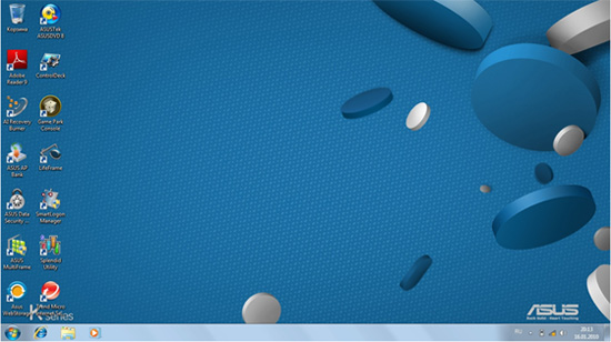 Несмотря на то, что большая часть программ входит в традиционный для ASUS набор софта, наличие дискретной видеокарты и игровой подборки на рабочем столе, а так же фирменного видеоплеера, прямо говорит о мультимедийной направленности компьютера.
