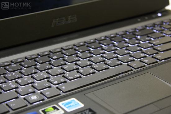 отличие от большинства ноутбуков ASUS, имеющих трехцветную символику).