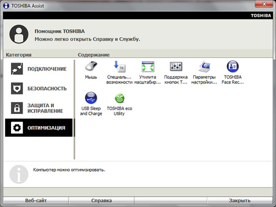 Кроме этого, присутствует и функция распознавания пользователей по снимку лица (Toshiba Face Recognition).
