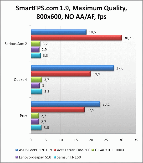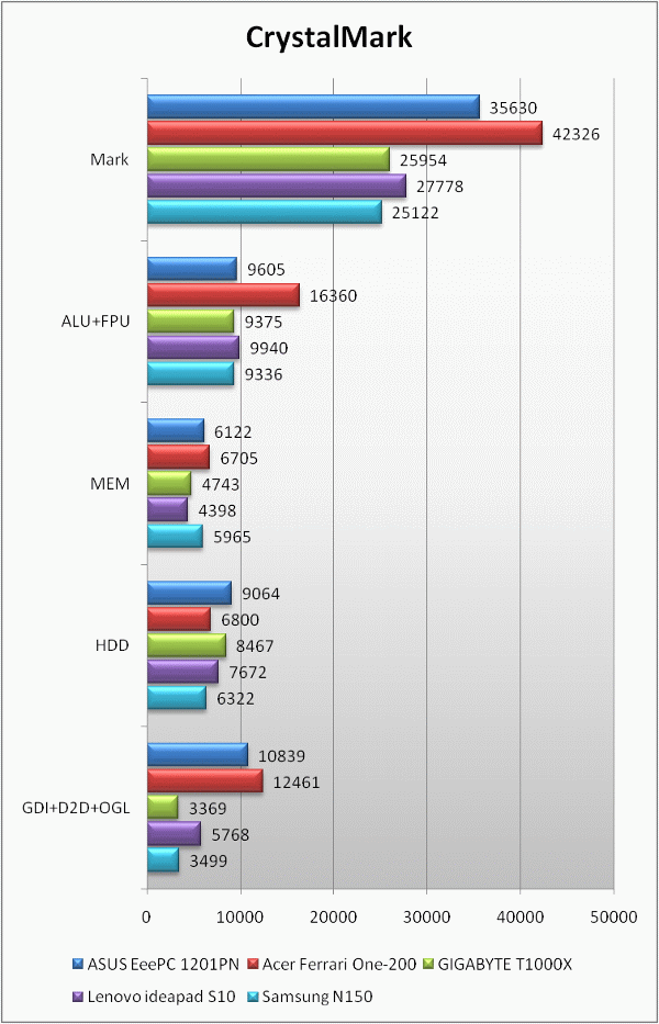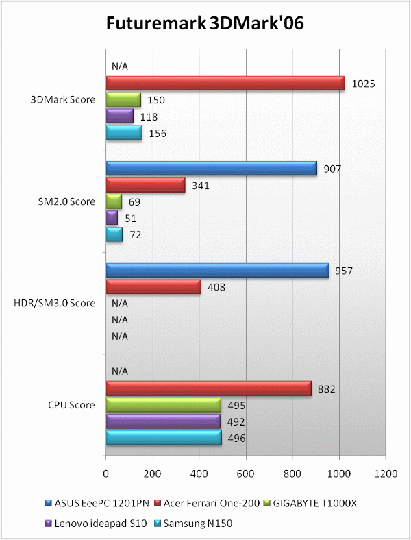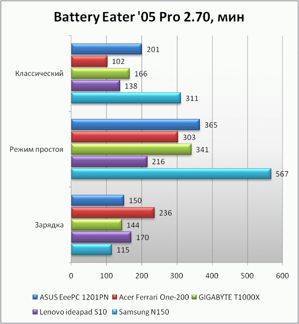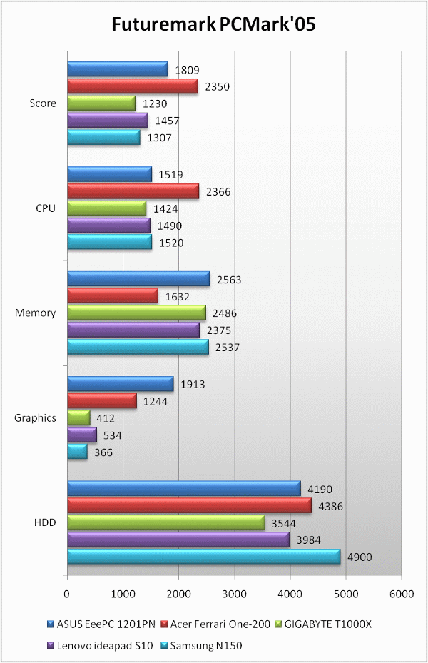 Для сравнительного тестирования производительности ASUS Eee PC 1201PN мы выбрали несколько популярных пакетов, которые позволяет в полной мере оценить возможности нетбука, а полученные результаты сравнили со следующими моделями нетбуков: