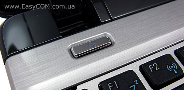 Над клавиатурой находятся две дополнительные клавиши, выполненные из полированного металла и оборудованные подсветкой. Клавиша слева отвечает включение/выключение тачпада, а справа – за включение нетбука.