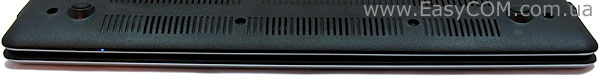 На днище нетбука расположено достаточно большое количество вентиляционных отверстий, большая часть из которых, к сожалению, декоративная, а также один единственный отсек, обеспечивающих доступ к слоту оперативной памяти. Для поддержания нетубка на поверхностях используется шесть резиновых ножек, две из которых находятся на аккумуляторе, и две пластиковые опоры. Фиксация аккумулятора в отсеке осуществляется двумя фиксаторами – пружинным и ручным. Дисплей, вэб-камера, устройства ввода