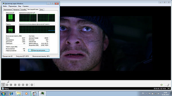 Платформа NVIDIA ION с графическим ядром NVIDIA GeForce GT218 обеспечивает значительное преимущество над «атомной» платформой и в некоторых тестах опережает платформу от AMD. В целом нетбук ASUS Eee PC 1201PN предоставляет возможность работы с различными офисными приложениями, обеспечивает удобный серфинг в интернете, а также позволяет воспроизводить музыку и фильмы, запускать многие из нетребовательных игр. Работа с HD-видео Используемая в нетбуке ASUS Eee PC 1201PN платформа NVIDIA ION следующего поколения, как заявляет производитель, способна осуществить аппаратную поддержку в декодировании HD-видео с разрешением вплоть до 1080p. Чтобы определить насколько все это хорошо работает, мы сперва установили дополнительный набор кодеков в лице K-Lite Mega Codec Pack и проигрыватель Media Player Classic - Home Cinema, а затем попробовали посмотреть несколько HD-фильмов, два из которых отличаются достаточно большим видеопотоком: