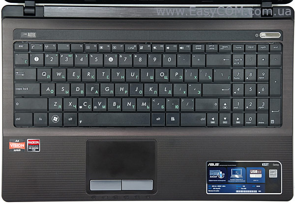 Обзор и тестирование ноутбука ASUS K53TAНе так давно к нам на тестирование уже попадал один из ноутбуков K-серии третьего поколения от ASUS. Это был 14-дюймовый ASUS K43E, который, стоит сказать, нам очень понравился, как по дизайну и уровню производительности, так и по своей доступности. В сегодняшнем материале мы познакомимся с еще одним ноутбуком этой серии, а именно с 15,6-дюймовым ASUS K53TA, который обладает интересным внешним видом и комплектуется достаточно производительными компонентами. Данная модификация основывается на новейшей платформе AMD Sabine, и, помимо инновационного APU A-серии, совмещающего ядра CPU и GPU на одном кристалле, обладает дискретным графическим адаптером, причем без поддержки технологии AMD Radeon Dual Graphics. Немаловажной особенностью ноутбуков серии K53 является поддержка технологии ASUS IceCool, которая подразумевает размещение самых горячих компонентов на нижней стороне платы. Благодаря этому подладонная область корпуса меньше нагревается в процессе работы ноутбука. Внешний вид