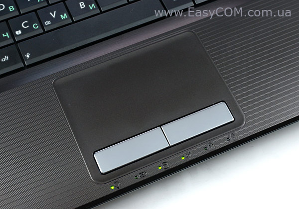 Для управления курсором используется тачпад ELAN Smart-Pad, который является частью подладонной области, но в отличие от нее имеет гладкую поверхность, по которой, стоит отметить, идеально скользит палец. Площадь сенсорной панели не очень большая, но благодаря отличной чувствительности, недостатка в этом не наблюдается. Главной особенностью тачпада является поддержка функции множественного касания, в том числе и тройного, обеспечивающего быстрый доступ к «Моему компьютеру» или переключению открытых окон. Клавиши тачпада обладают достаточно крупными размерами и имеют хороший отклик при нажатиях. Однако из-за хромированного покрытия они очень хорошо собирают отпечатки пальцев.