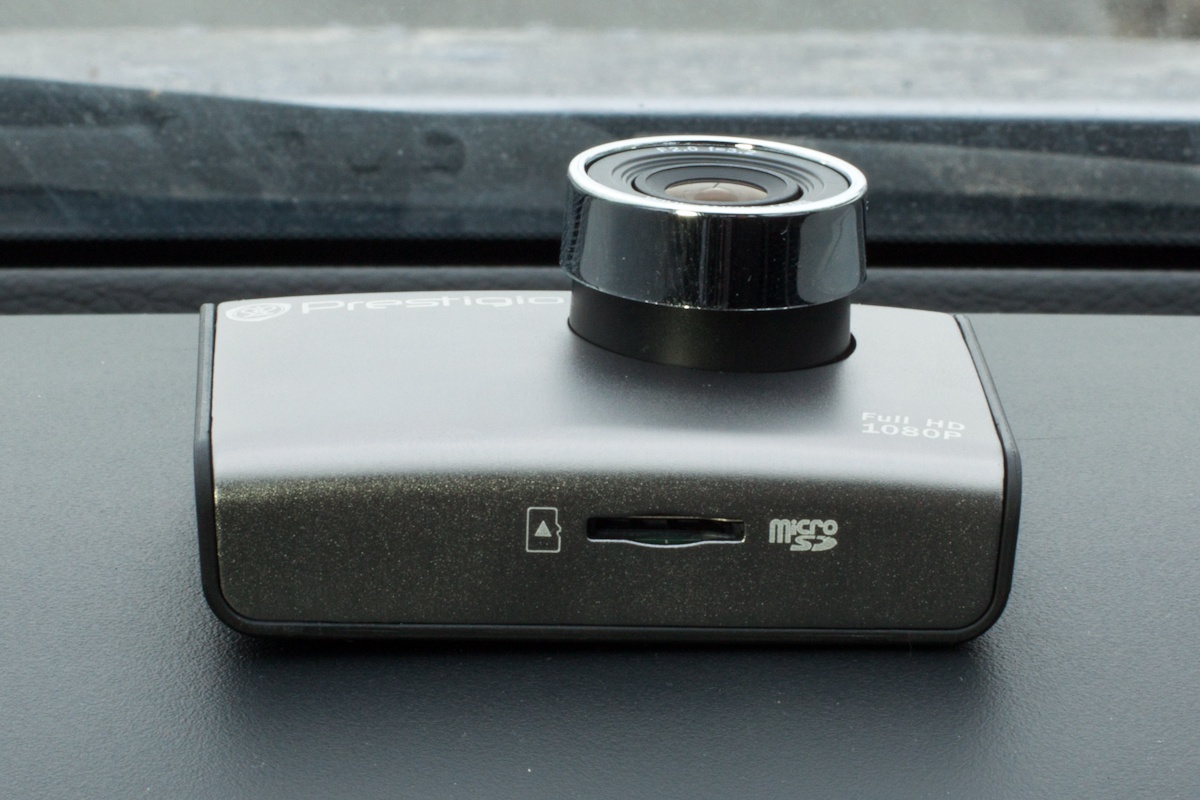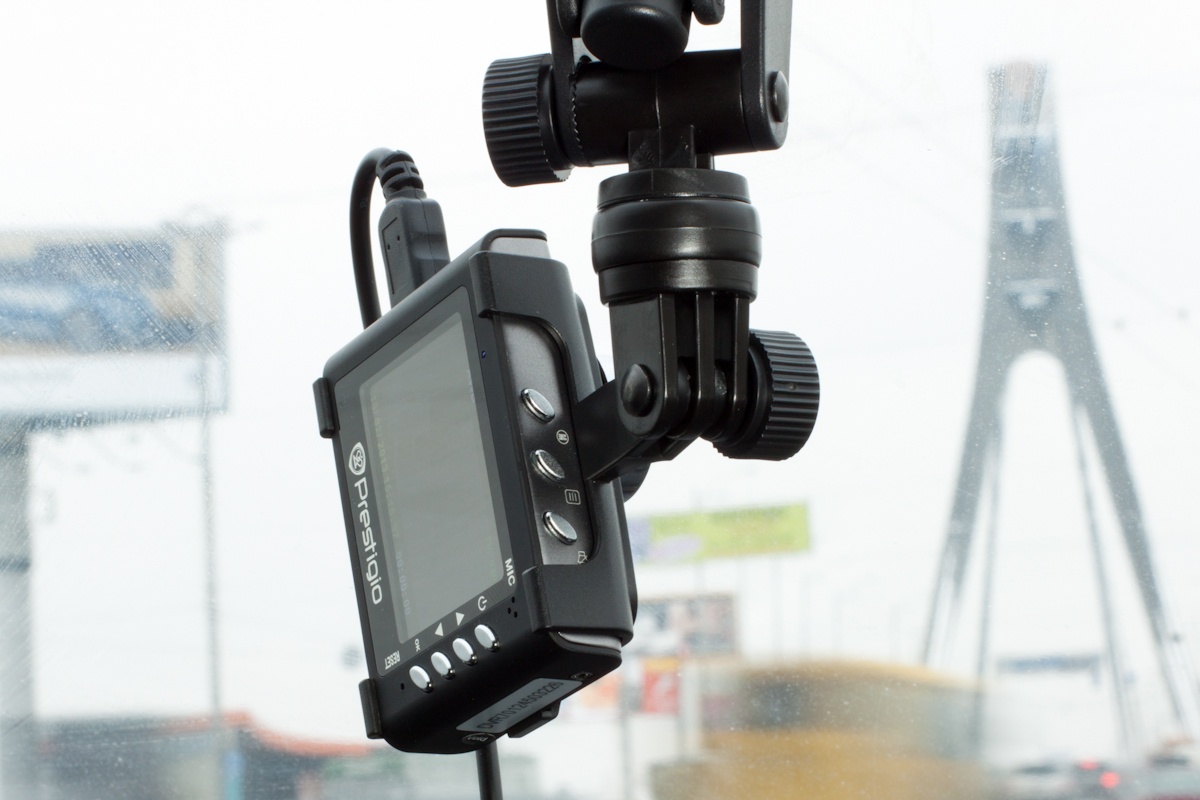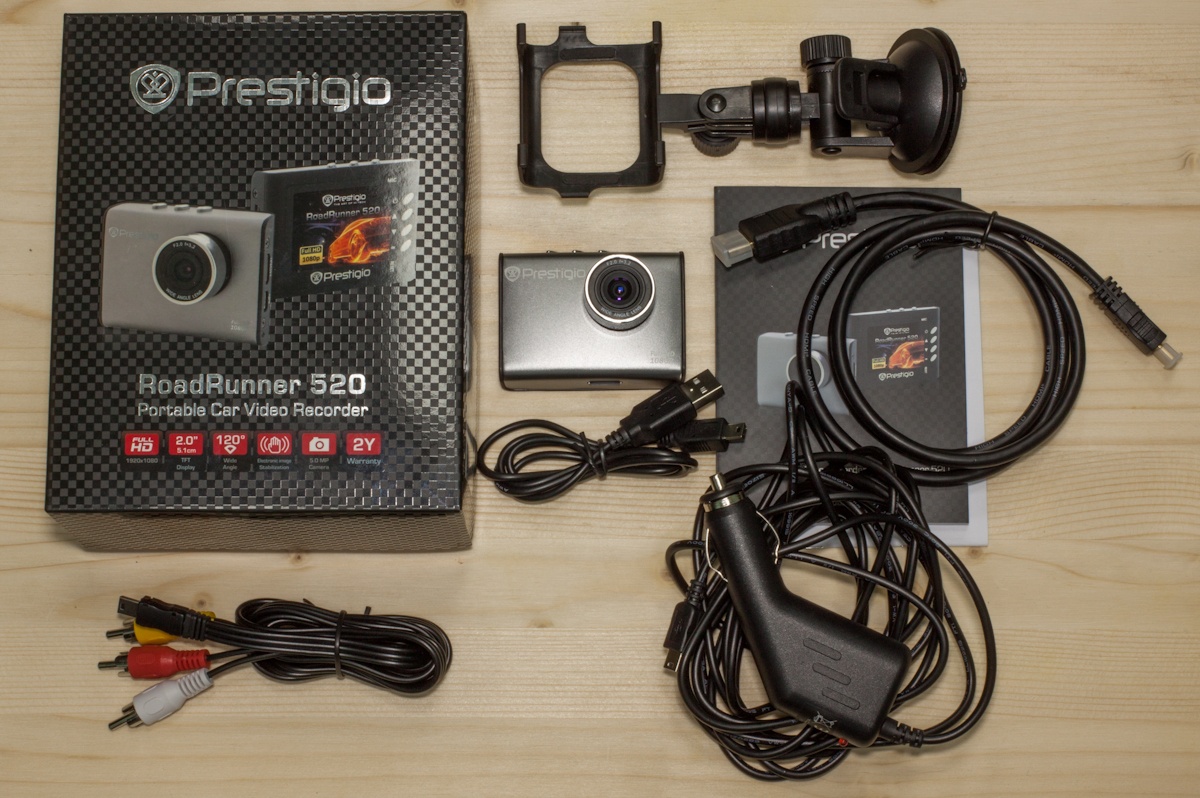 Комплект поставкиЕсли Prestigio RoadRunner 520 вас заинтересовал описанными выше возможностями, то не лишним будет сказать и про комплект поставки, который включает почти все самое необходимое. Тут есть автомобильное зарядное устройство со шнуром длиной 3 метра, чего при необходимости будет достаточно, чтобы крепить регистратор и на заднее стекло автомобиля. Для подключения ко внешним устройствам можно использовать прилагаемые кабель miniHDMI-HDMI, шнур mini USB-USB и mini-USB-тюльпан. Приятным дополнением является возможность использования RoadRunner 520 в качестве веб-камеры, установка дополнительных драйверов для пользователей Windows не потребуется. Также в коробке вы найдете крепление самого регистратора в виде фиксирующей рамки, поворотных механизмов и присоски. К нему замечаний нет, оно изначально идет в собранном виде, к стеклянной поверхности крепится надежно. Присоска хоть и небольшая, но уверенно держит всю конструкцию, включая регистратор, вес которого всего 52 грамма. Рамку с закрепленным устройством без особых усилий можно развернуть вокруг своей оси в необходимое положение. А вот чего по нашему мнению не хватает в наборе, так это карты памяти. Напомним, слот здесь MicroSD/microSDHC. Рекомендуем при покупке таковой не экономить на скоростных характеристиках и смотреть, чтобы в комплекте был переходник на формат SD (Secure Digital). В этом случае вы сможете при необходимости быстро ознакомиться с отснятым материалом не только на смартфоне или планшете, но и на ноутбуке или компьютере с картридером. Максимальный объем поддерживаемых карт 32 ГБ. КорпусСам по себе регистратор компактный и легкий, его корпус выполнен из пластика различных формаций. Замечаний по сборке у нас нет. На той части регистратора, которая смотрит в сторону водителя, расположен 2-х дюймовый TFT дисплей с соотношением сторон 4:3, микрофон, вход сброса настроек и четыре кнопки управления. На нижнем торце находится разъем для карт памяти, слева динамик, порты miniUSB и HDMI. Сверху еще 3 кнопки управления. Объектив камеры выступает над корпусом сантиметра на полтора. На всякий случай, будьте внимательны при транспортировке, чтобы не повредить устройство. Детальнее пройдемся по кнопкам. Верхние справа налево: “Звук” (включение/выключение), “Меню” (переход между режимом записи видео, фотосъемкой, картой памяти, меню воспроизведения и закладкой с общими настройками регистратора), “Режимы” (переключение между режимами записи видео, фото и просмотра). Выводы